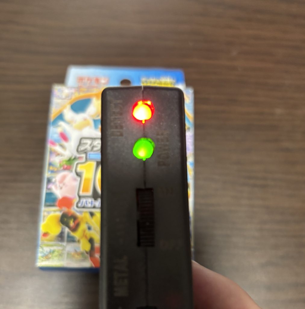 金属反応あり!つまりキラカードは入っているということ!簡単にわかる!